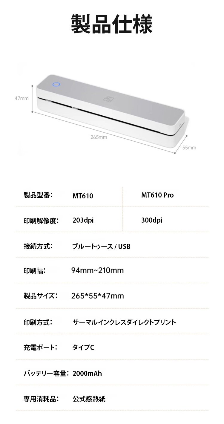 コンパクトサイズの携帯プリンター